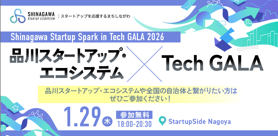 今回は、1/27(火)~29(木)に名古屋市にて開催されるTech GALAのサイドイベントとして品川区のスタートアップ・エコシステムを体感できるイベントを開催。品川区のスタートアップと全国の自治体が繋がり、事業進出や事業拡大に向けたマッチングイベントを開催します。